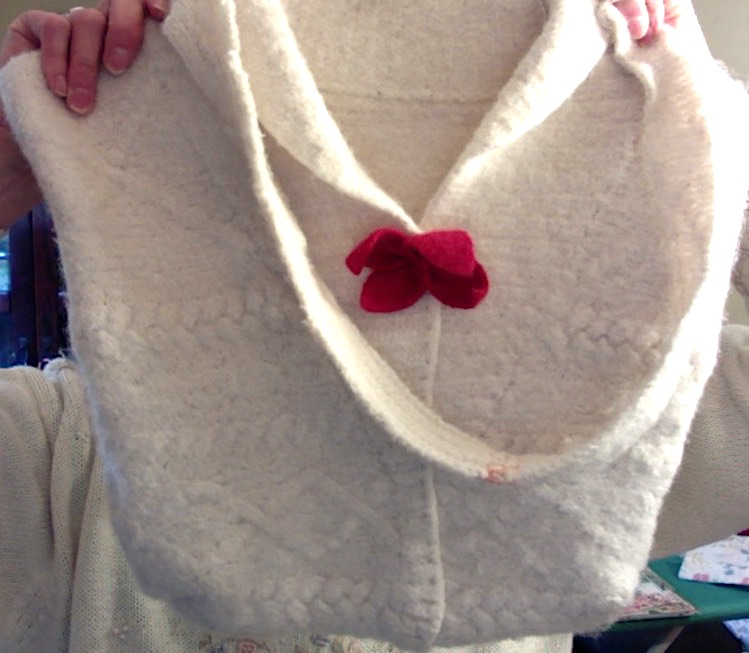 White Felted Wool Sweater Bag Published October 21, 2020 at 749 × 653 in Fabric Purses Gallery ← Previous Next → White Felted Sweater Bag $35.00 Share this: Share on Facebook (Opens in new window) Facebook More Share on Pinterest (Opens in new window) Pinterest Like Loading...